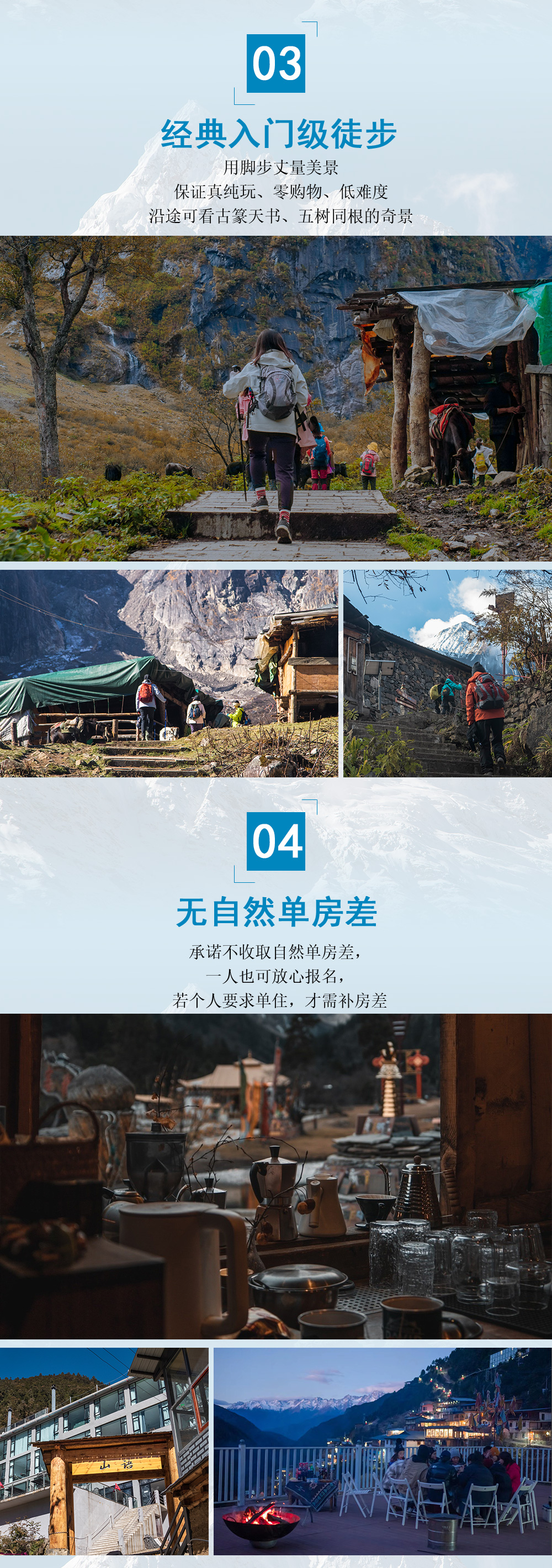 备注:以上价格仅区别雨崩村三晚住宿;丽江、飞来寺 住宿一致;