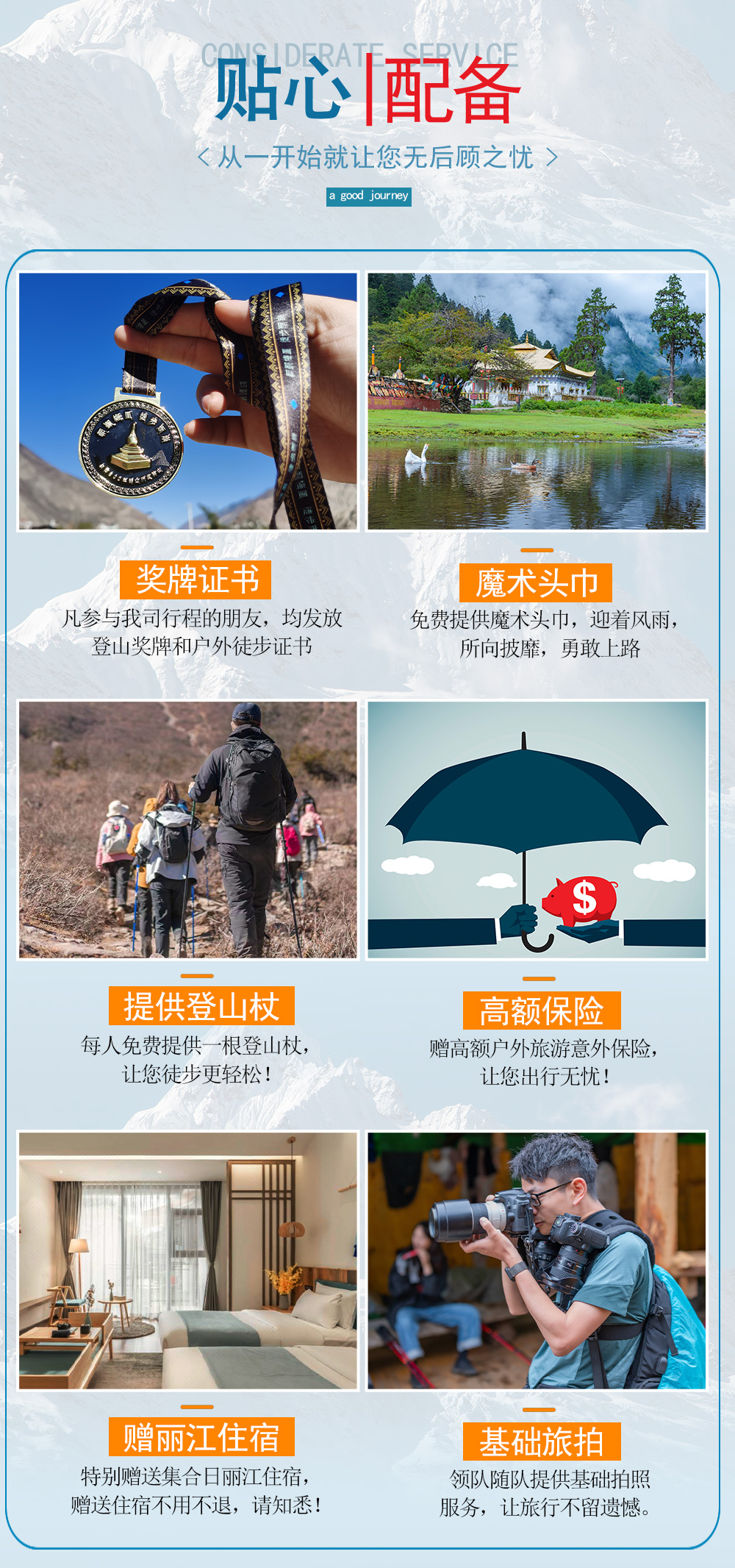 10、赠送说明:本行程免费赠送集合日丽江住宿,不使用则默认放弃,无费用退还;