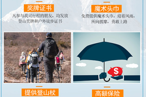 装备:登山杖1根(免费租借)、一次性雨衣1件(仅雨季提供)、魔术头巾1条;
