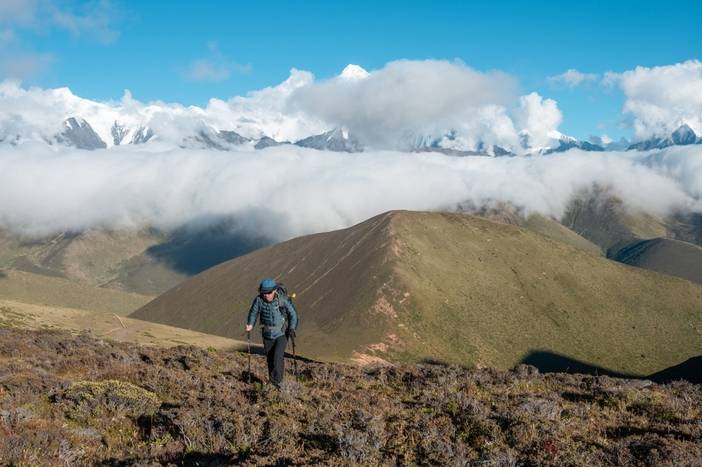 民宿简单休息后,下午徒步前往坐若湖。坐若湖是贡嘎山一个少有人去过的高原海子,坐落于贡嘎西一山脊线上,被誉为“看贡嘎最近的海子”,其观赏贡嘎的视角不输于冷嘎措,等待日落后原路返回客栈休息。