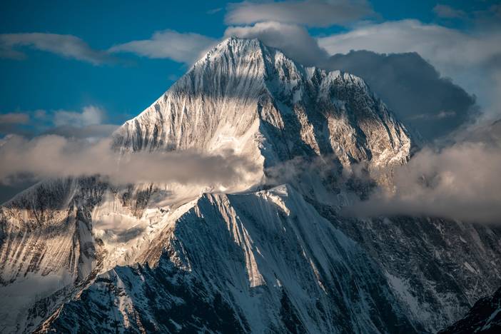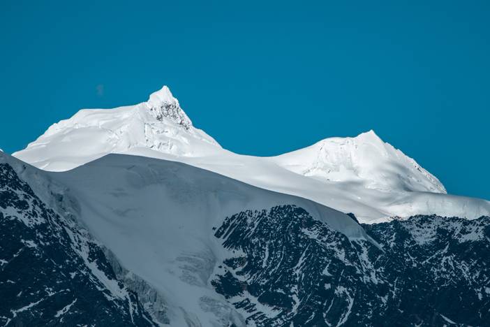 今天是早起的一天,乘车大约1.5个小时到达子梅垭口,若天气好在这里等一场贡嘎的日出。贡嘎主峰以及卫峰沉睡在暮色之中,天边出现一缕金光洒在群峰之上,黑暗逐渐褪去,雪山的磅礴身姿出现在眼前。