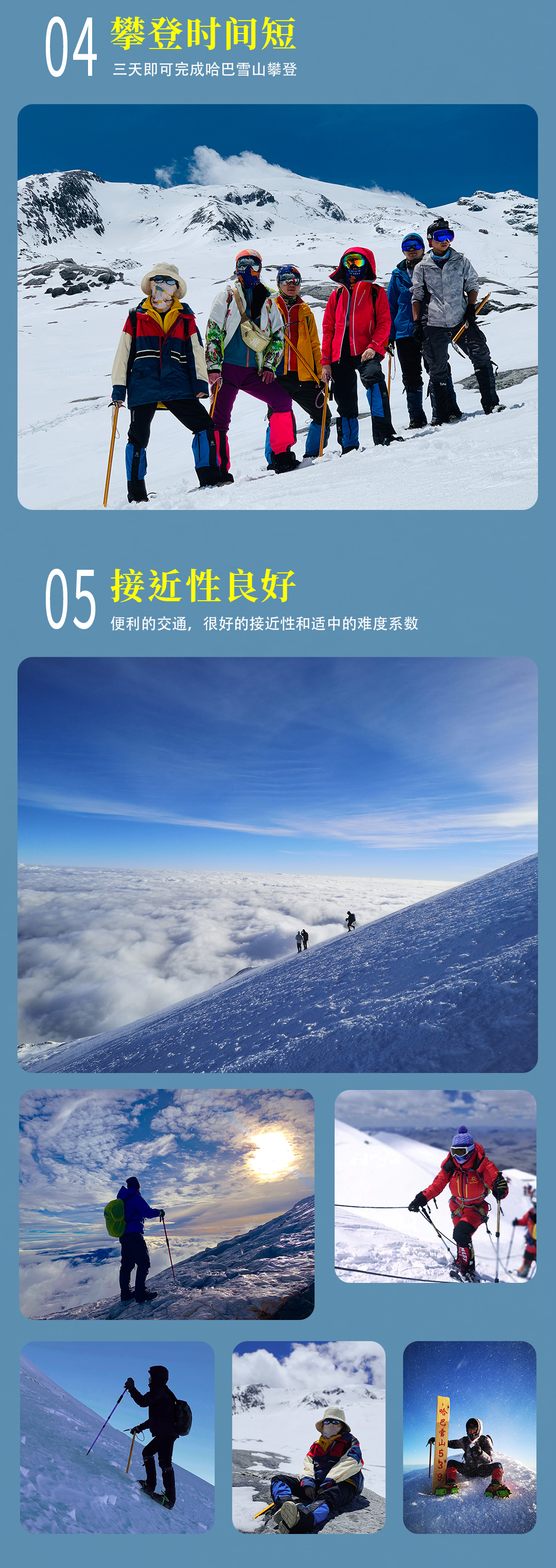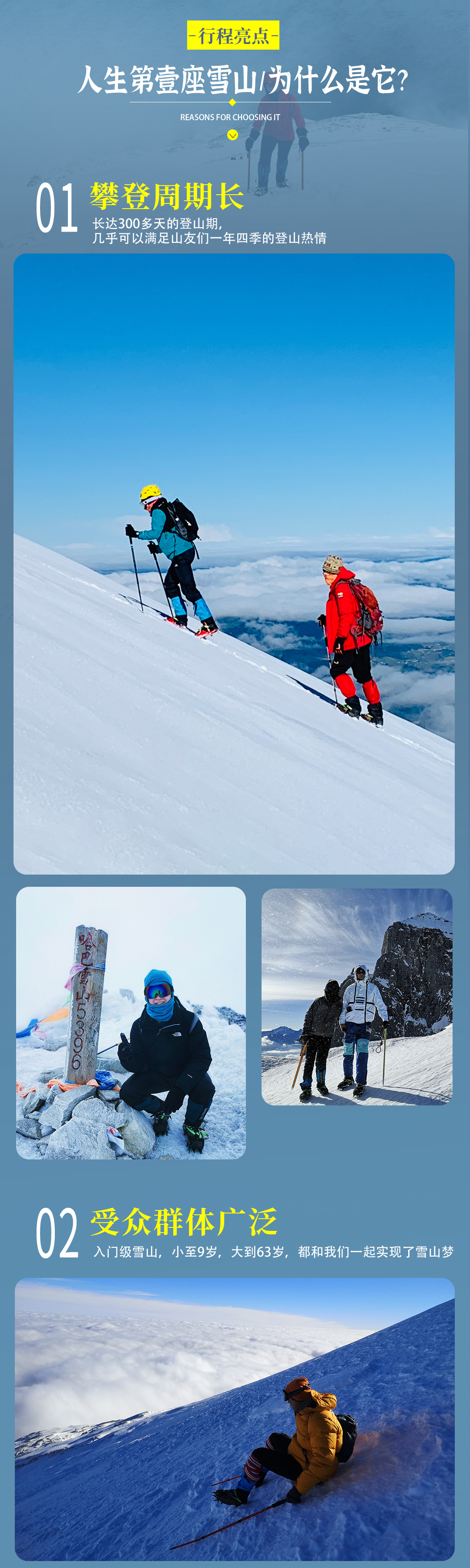 3、向导:登顶路段高山向导1比1,提高登顶率和安全性;