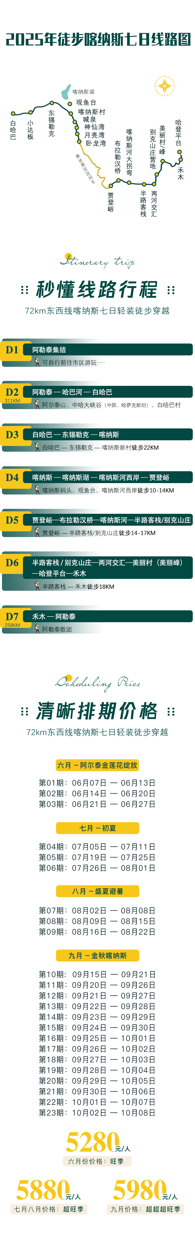 ②如因政策原因喀纳斯河西岸不允许进入,线路将做调整。