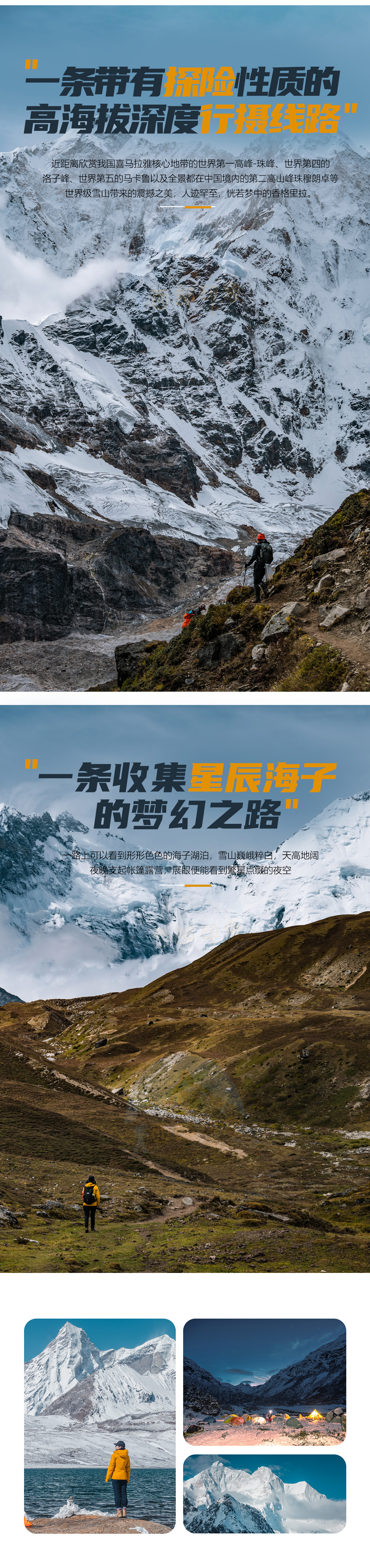7、我们优先接受参加过相关户外活动的客户报名,包括且不限于:云南地区的雨崩徒步活动、哈巴雪山攀登活动、洛克线徒步、梅里北坡徒步、四川地区的雀儿山攀登活动,贡嘎外转山、新疆地区的狼塔线、乌孙古道徒步、博格达徒步及青海玉珠峰攀登等活动。具有一定的高原户外徒步经验,将会比较轻松的完成本次珠峰东坡徒步。我们要求出具体检报告及户外旅行简历说明,但不核验其资料的真实性,不承担因虚假资料带来的恶性后果。