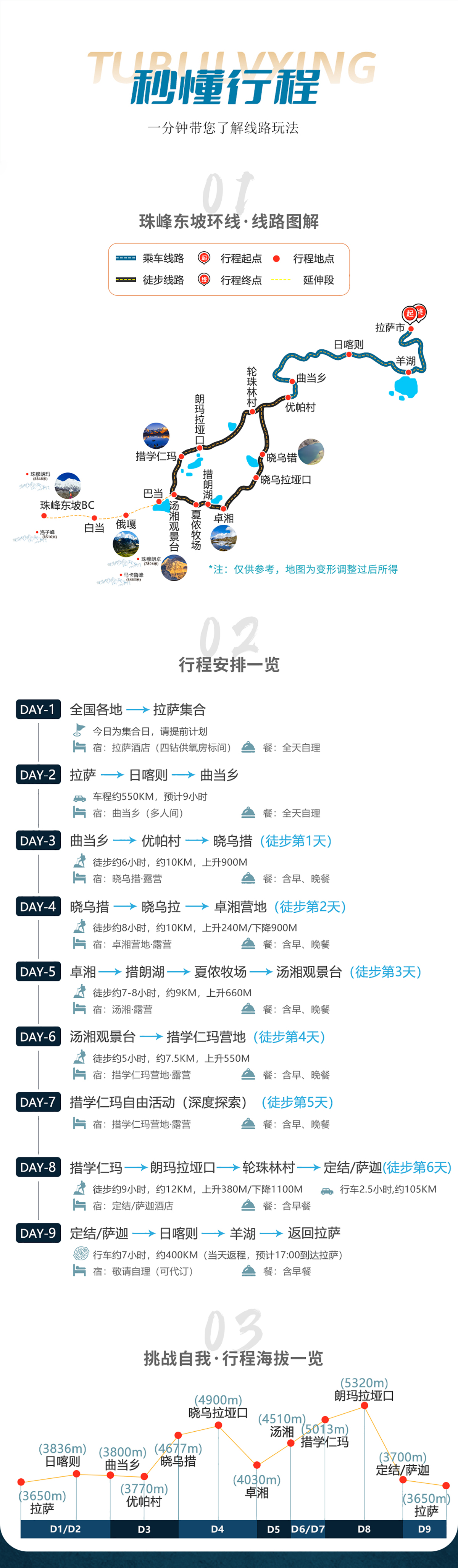 住宿安排:两晚城市酒店(拉萨、萨迦),一晚曲当优帕村多人间,五晚山地营地帐篷;