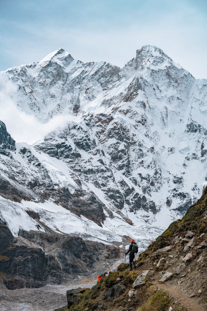 (徒步第4天)今年行程较短,早餐后出发,沿着“之”字型小路,继续观赏雪山,然后继续一路向上,沿路都能看到壮观的雪山,下午抵达措学仁玛营地,在营地周围自由拍摄,这里不仅可以看到群山(珠峰,洛子峰,珠穆郎卓、马卡鲁)还能在周围的湖边看到倒影,以及珠峰巨大的冰川。