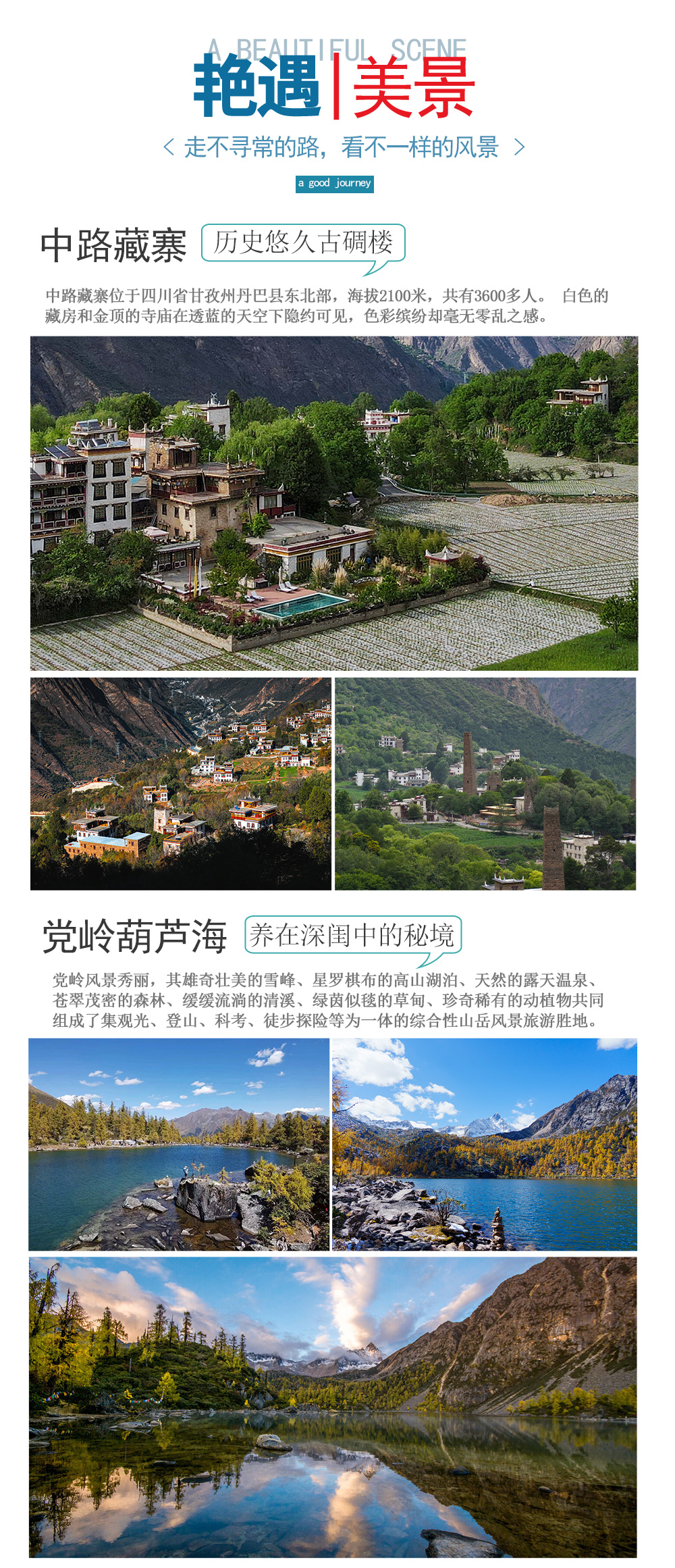 注:若遇到小金县至丹巴段道路封闭则改走:成都-泸定-中路藏寨。