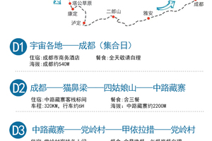 注:如因天气下雪等因素,无法翻越垭口,则改住丹巴县城。