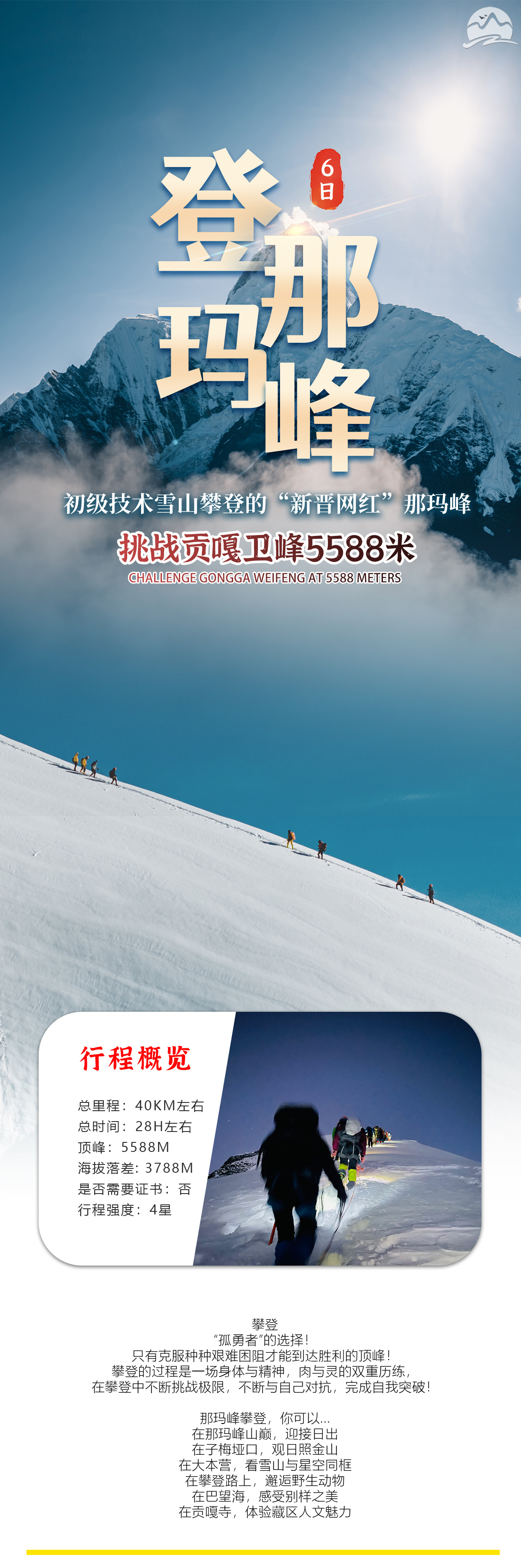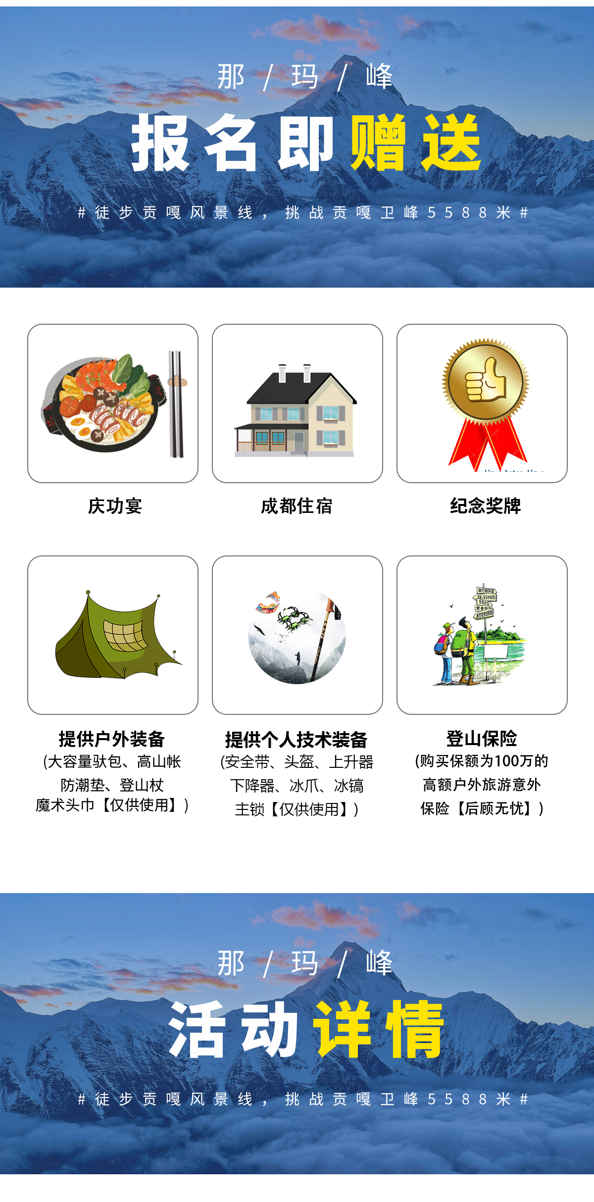 说明:高海拔环境特殊,活动一旦确认将产生相应费用(登山物资、登山活动注册费用,聘请专业协作费用),望周知!