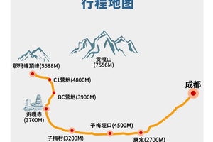 D5:C1营地—碎石坡—冰壁—5588峰顶——贡嘎寺—子梅村