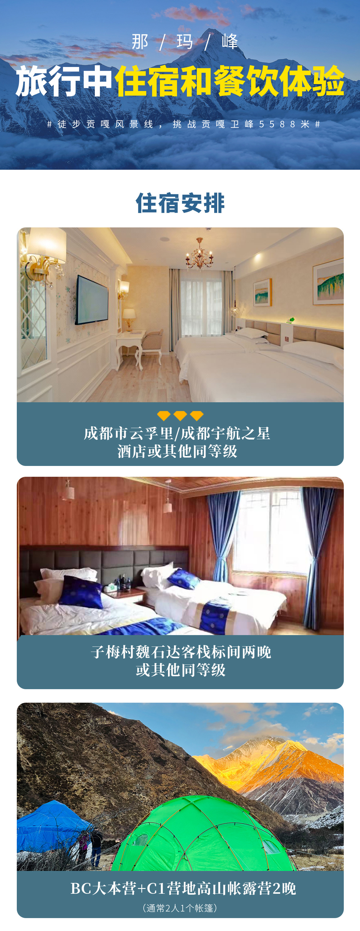 餐饮:C1营地早餐、路餐(自备)、大本营晚餐
