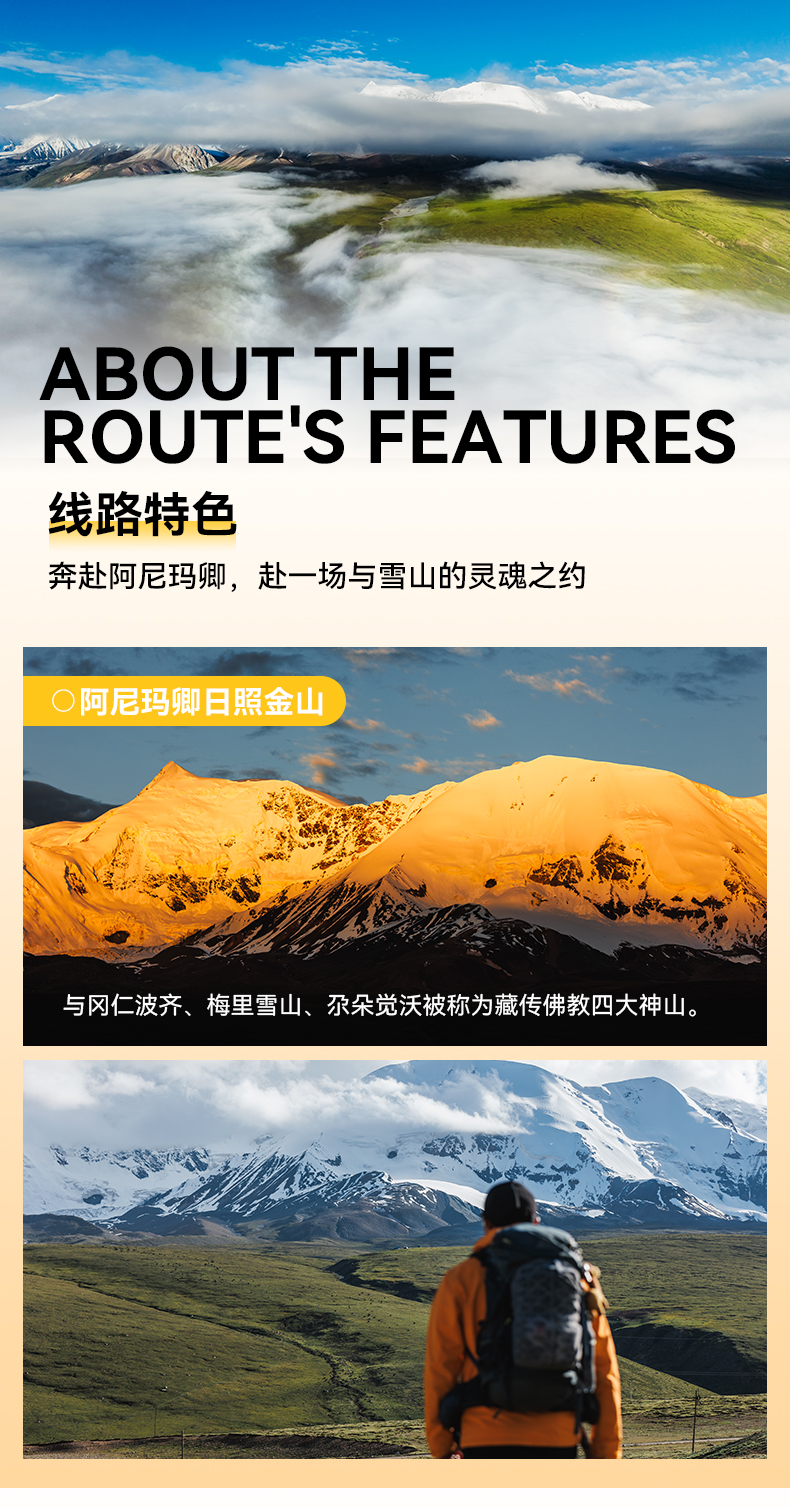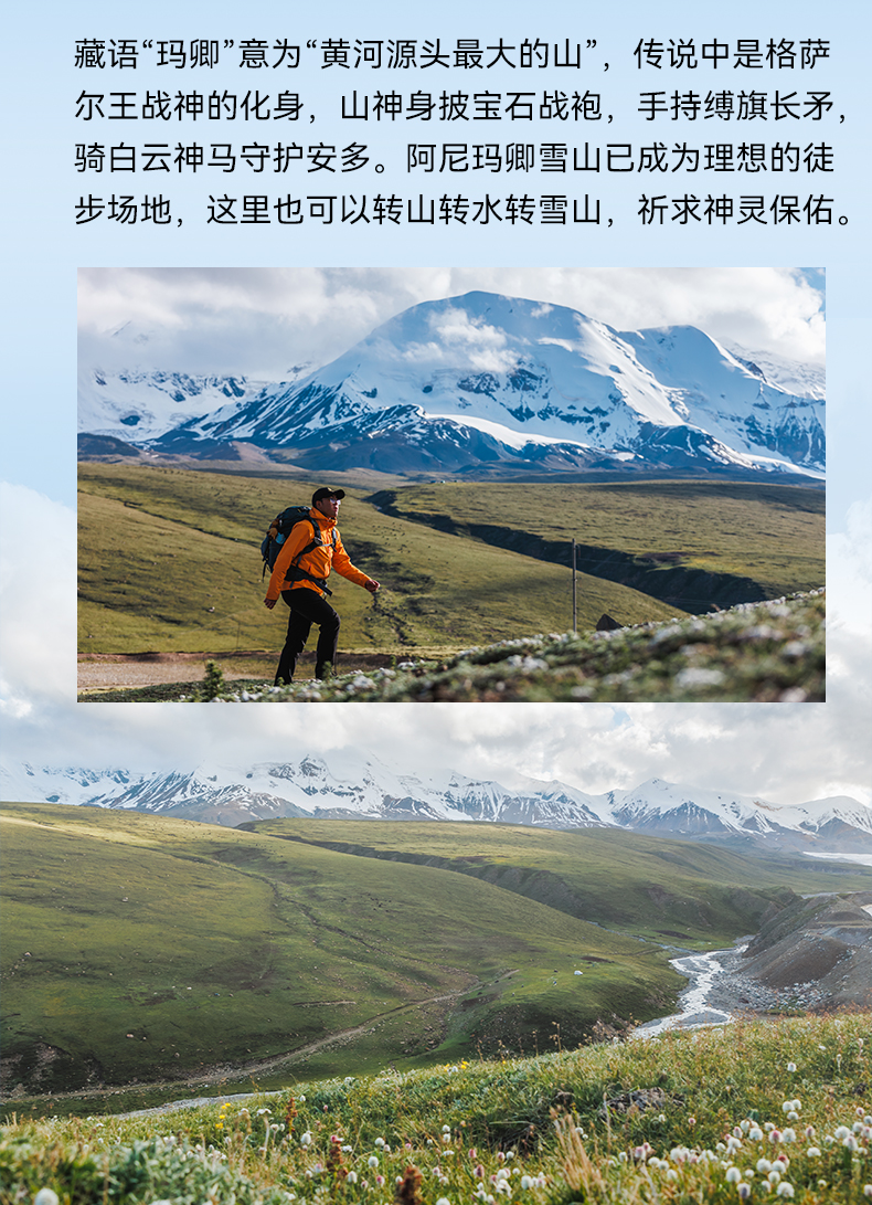 这是黄河源头最大的山,是与冈仁波齐、梅里雪山齐名的存在,徒步40公里穿越碎石路、高山草甸,在挂满经幡的垭口感受史诗传说与现实的奇妙碰撞