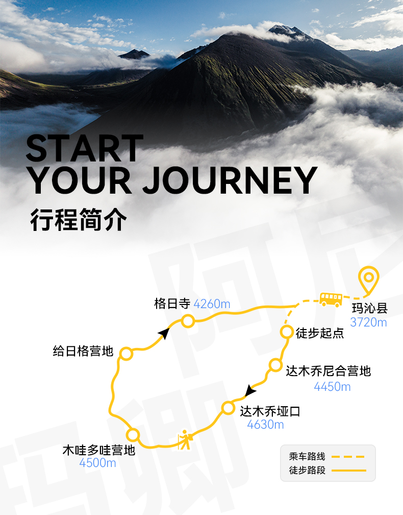 ▷ 海拔:达木乔尼合垭口4630km,木哇多哇营地约4500M