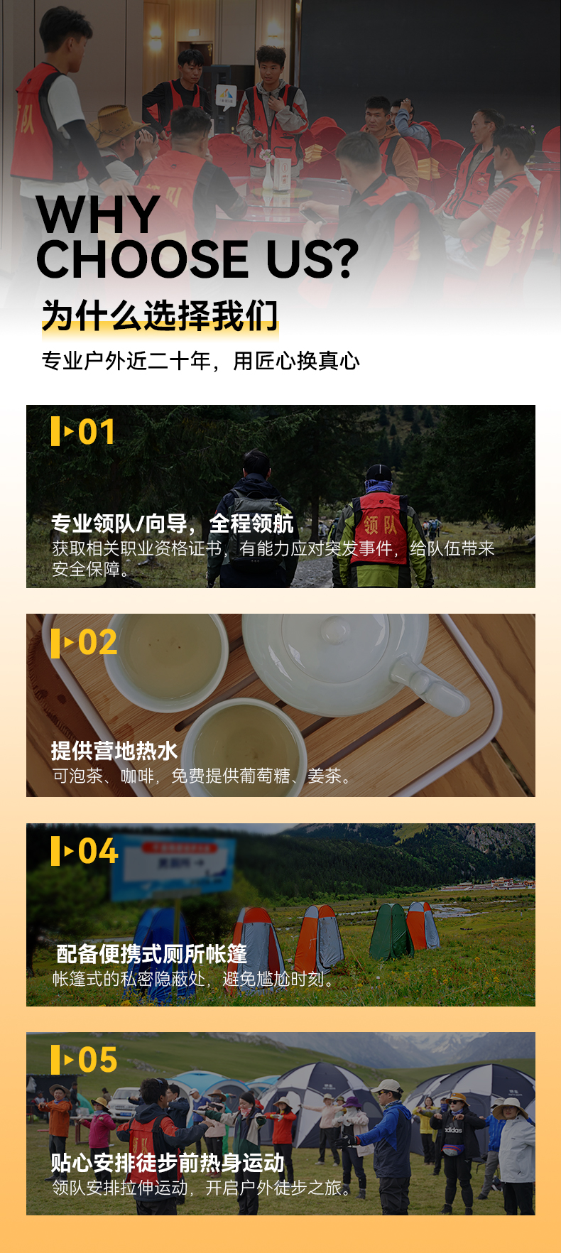 16.本次徒步活动行程特殊、目的地特殊,谢绝有关吃住行等方面的投诉,但是我们会尽力为大家安排好一切。