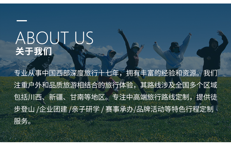 17.本次徒步活动全线为高海拔地区,经过海拔最高为4150M,平均海拔在3000M,请正确评估自己的身体情况做正确评估,以决定参加与否。