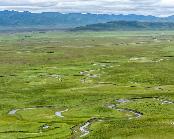 07:30早餐后途径【阿万仓湿地】,这里水草丰美,是黄河流域生态安全的天然屏障。连绵的曲水穿梭在这篇高山草原之上,美不胜收。