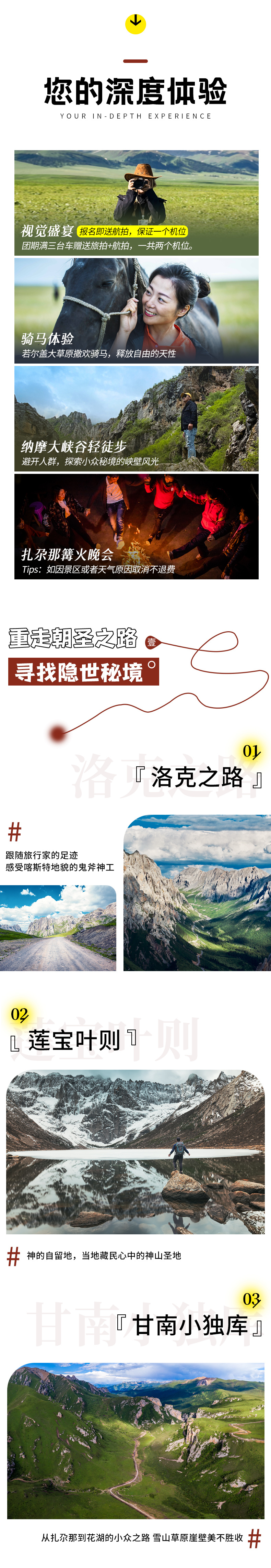 3、团期报名即送航拍,保证一个机位,团期满三台车赠送旅拍,一共保证两个机位