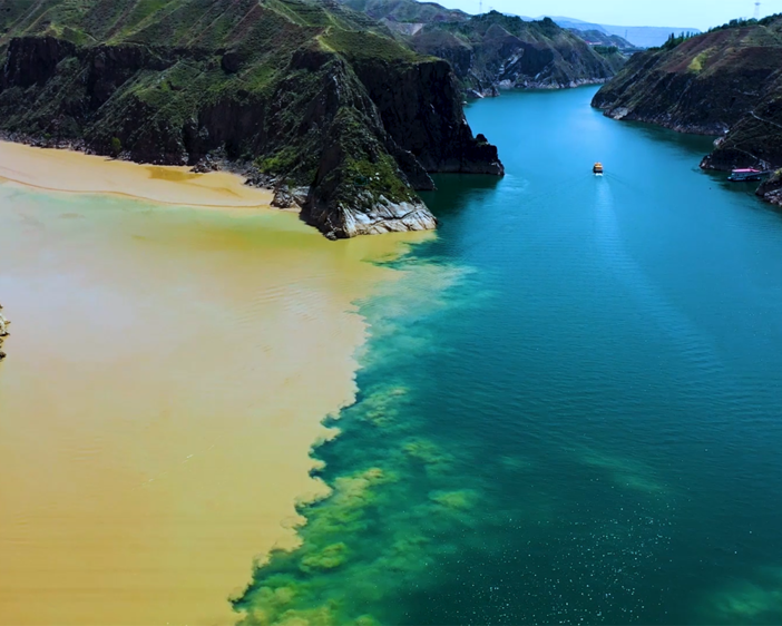 09 : 30抵达【刘家峡水库】这里也被称为“塞上小江南”,黄河自西北入境贯穿临夏北部,提起黄河人们多半的印象都是黄色的,但在这里看到的黄河却是蓝色的,蓝色黄河与黄色的洮河以“Y”字形交汇,泾渭分明行程“黄洮交汇”的天下奇观!