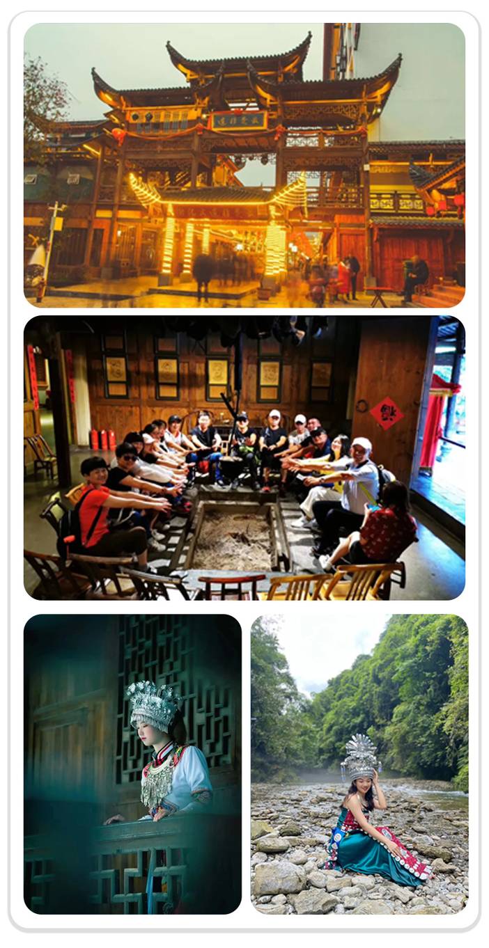 狮子关游览结束之后我们前往彭家寨景区,彭家寨旅游景区以全国重点文物保护单位彭家寨吊脚楼群为核心,以建筑艺术和土家文化为灵魂,以传统村落和旅游为载体,完整展示了土家人的生产生活场景。我们可以现场租用漂亮的土家服饰,走进当地人家中体验土家人的真实生活和留存完好的非遗文化带来的人文享受,还有小火车观光体验哦。