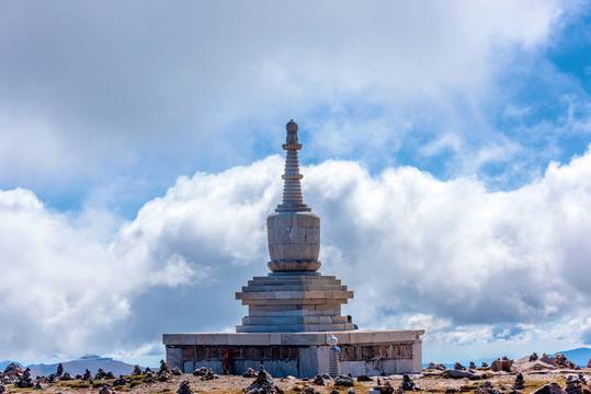 北台→鸿门岩(9公里,3小时),沿华北屋脊牌坊下行,沿途可见风马旗和经幡群。