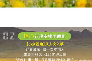 10、由于高原地区的交通状况不是十分的理想,有时候偶尔会发生诸如塌方、滑坡、泥石流之类的自然灾害,可能会导致堵车耽误时间,所以建议省外朋友尽量购买第二天离开的机票或火车票;。
