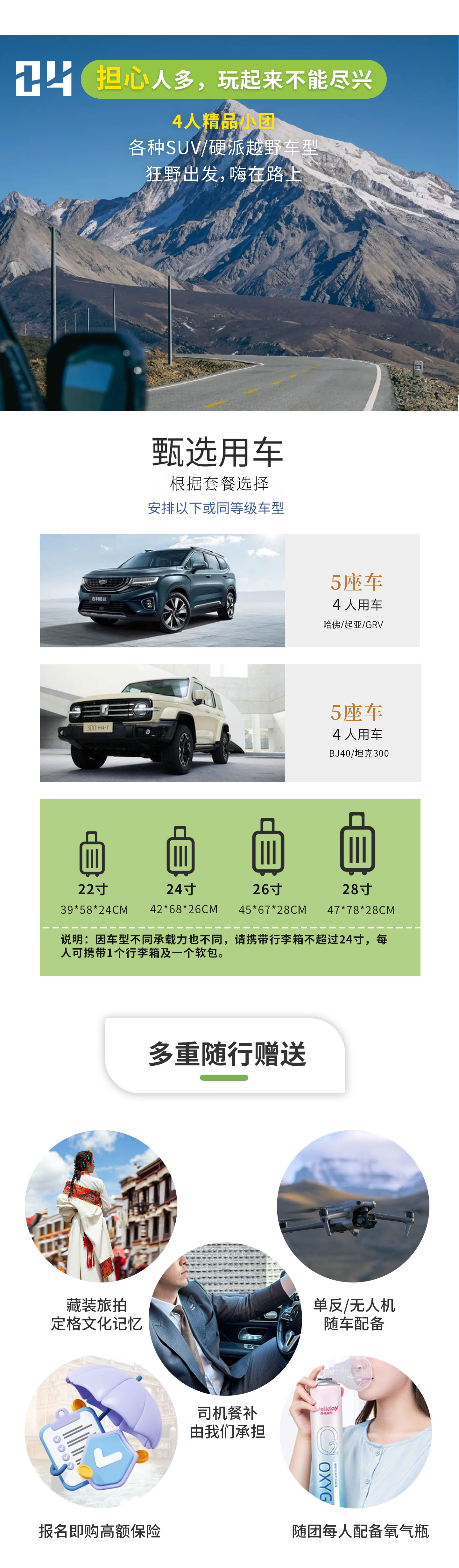 ■ 来回车费,普通5座SUV、硬派越野根据选择套餐安排