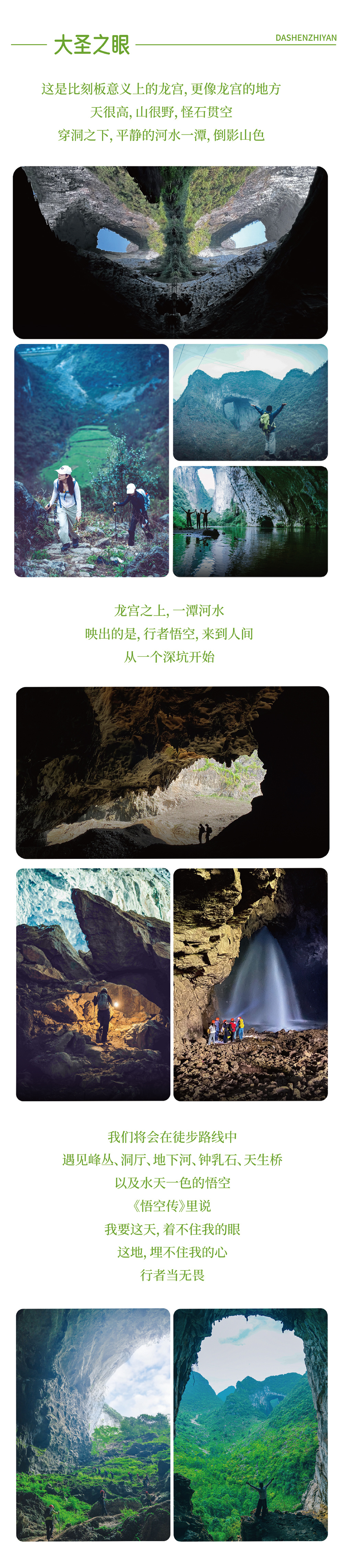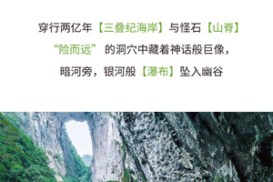 早餐后,乘车出发前往大圣之眼。抵达徒步起点简单热身运动后开始徒步行程,穿越天坑、崖洞、溶洞、地下河谷。