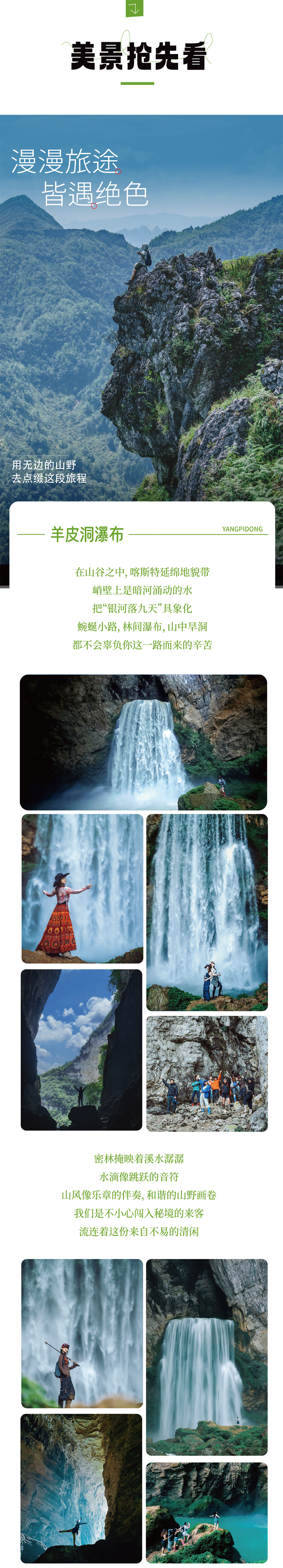① 今天的徒步路程约6公里,累计爬升约为350米,瀑布溶洞峡谷风光为主,需要山路,有陡坡路段、雨季道路泥泞,需要穿防滑的鞋子和带备换衣服鞋子。