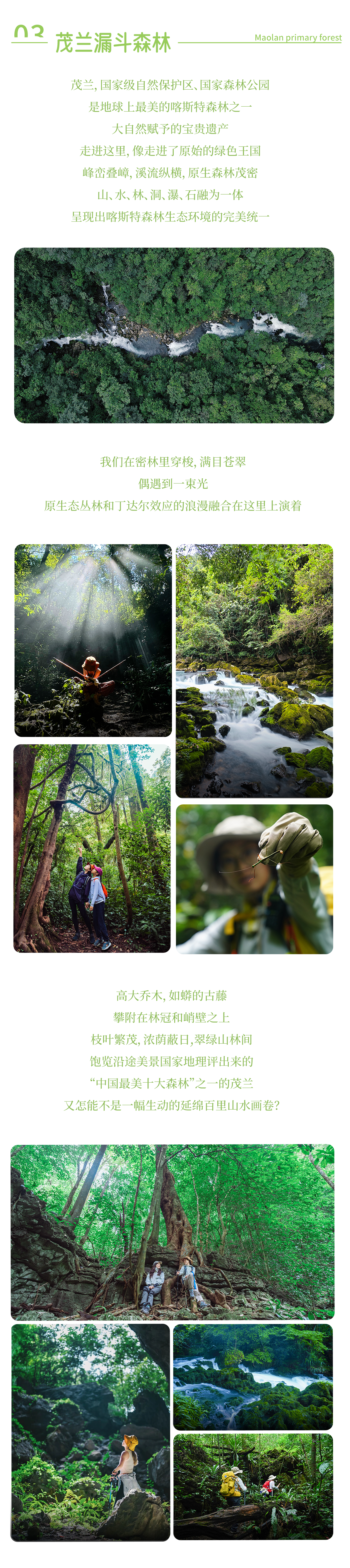 早餐后,乘车前往茂兰国家森林保护区,踏入茂兰漏斗森林,宛如闯进自然的神秘诗章。翠影摇曳,日光透过枝叶的缝隙,洒下斑驳的金芒,似岁月的流金散落一地。沿着蜿蜒小径前行,耳畔是林风的私语,那是古老森林低吟的歌谣。脚下的落叶绵软,似大地温柔的絮语,每一步都踏出自然的韵律。