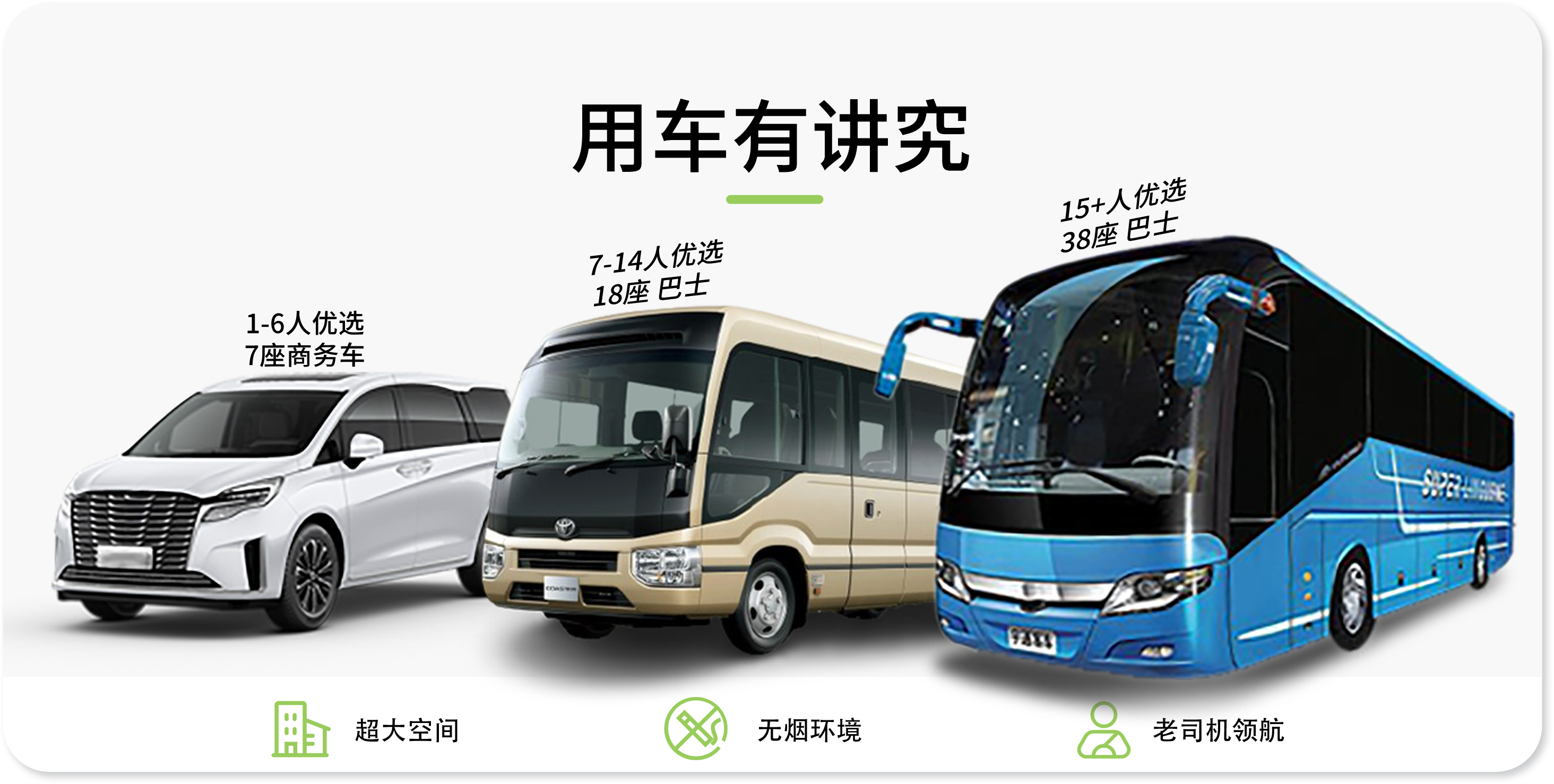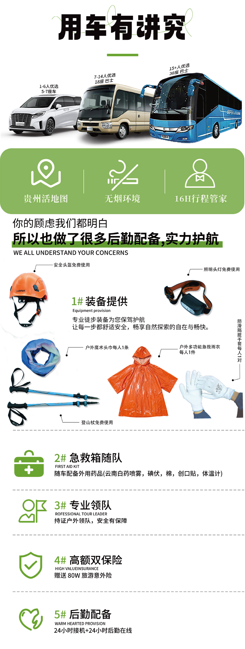 ➀ 用车:当地行程用车(根据具体人数选配车型:5-38座)