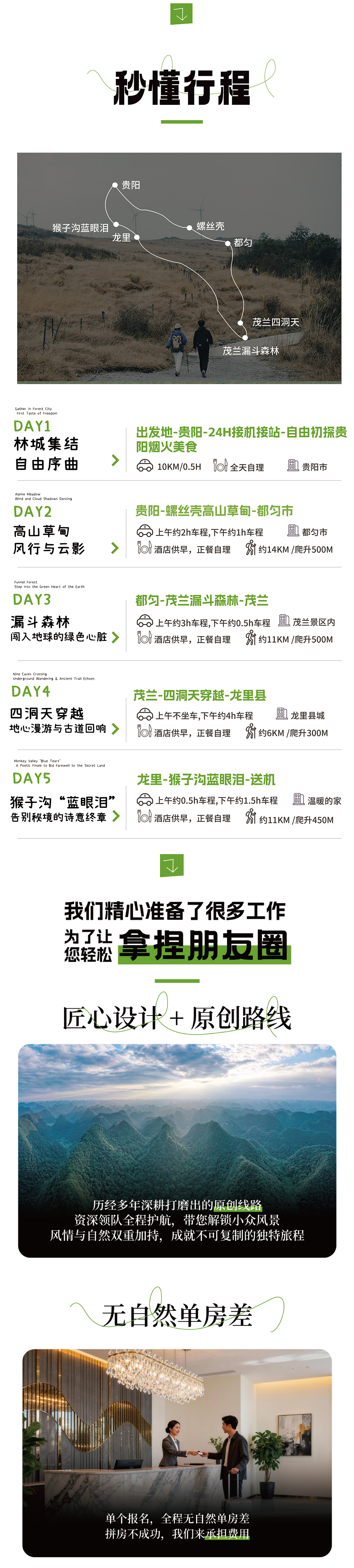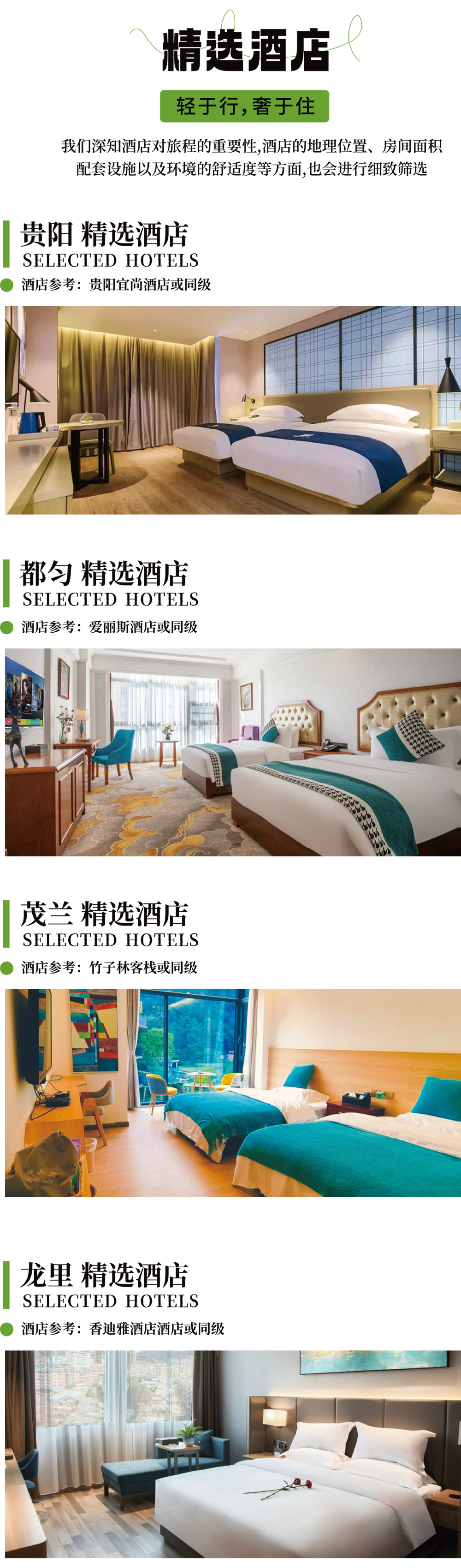 ➁ 住宿:贵阳1晚+都匀1晚+茂兰1晚+龙里1晚酒店(2人/间)