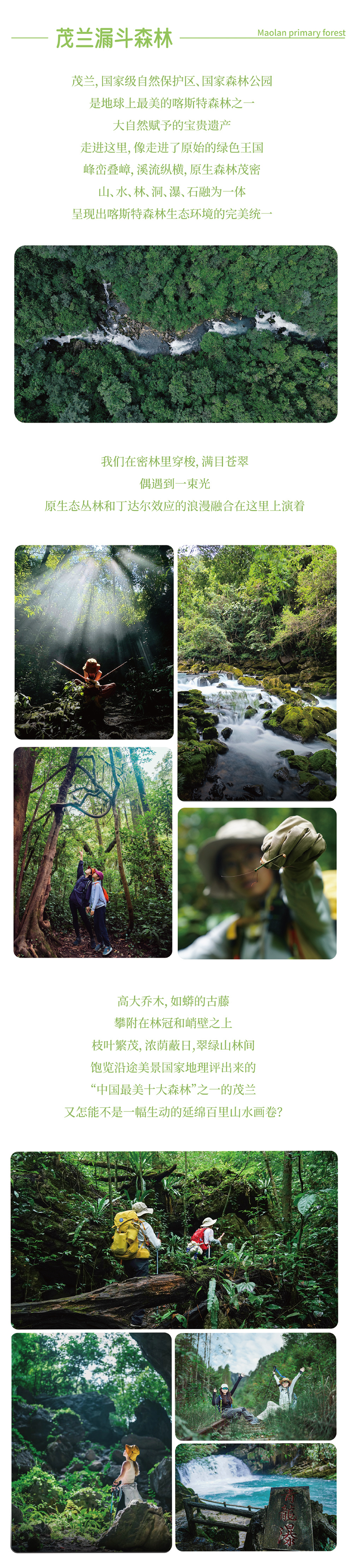 今天,我们将深入被联合国教科文组织誉为“地球腰带上的绿宝石”的茂兰国家级自然保护区。闯入神秘的漏斗森林,仿佛跌进一个被时光遗忘的绿色王国。阳光如金线般从百米高的古树冠隙间洒落,照亮空中花园般的苔藓与蕨类。脚下是厚厚的落叶层,柔软如毯;耳畔是鸟鸣与溪水的合奏,空灵悠远。