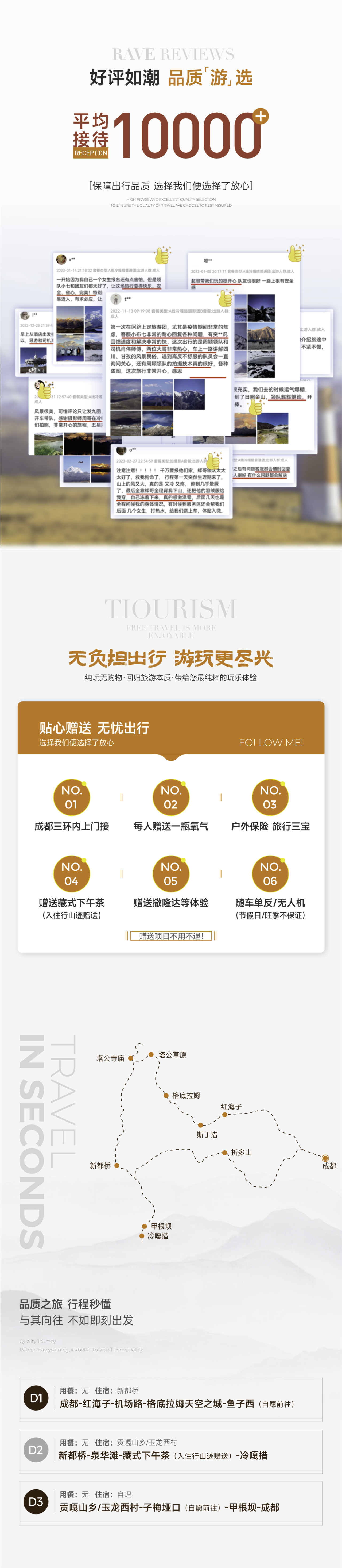2、如遇节假日或交通管制等特殊情况,回到成都的时间较晚,建议回程尽量安排次日航班和火车!