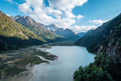 早餐后前往【月亮湖】,藏身在四川康定市普沙绒乡,是个国家级森林公园。这个地方海拔高达3000多米,风景美得让人睁大眼睛,所以它被誉为川藏线上的一颗"明珠"。湖的名字源自湖中的草坪,看起来像一轮轮弯弯的月牙。当你站在湖边往远处看,湖水清澈见底,就像一面巨大的镜子,倒映着周围的山峦和蓝天白云。湖上的倒影相互辉映,构成了一幅360度无死角的仙境画卷。这个地方真是神秘又幻境,雪山、森林和溪水交相辉映,形成了一幅静谧而壮美的画面,保留着最原始的自然之美。如果你想找一个距离城市遥远的地方,享受大自然的怀抱,月亮湖绝对是个绝佳选择。去吧,好好享受这片藏在深山中的美丽湖泊吧!
