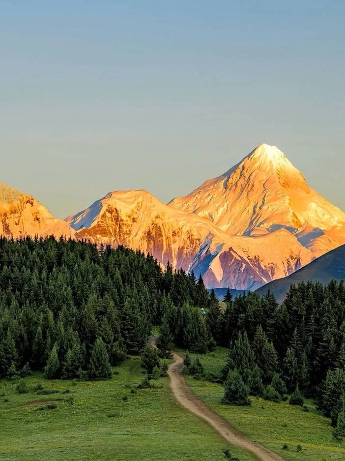 午餐后前往【空中花园】观看贡嘎雪山,从不同角度欣赏贡嘎雪山的雄伟身姿,周边的草原、森林与雪山相互映衬,美不胜收。。