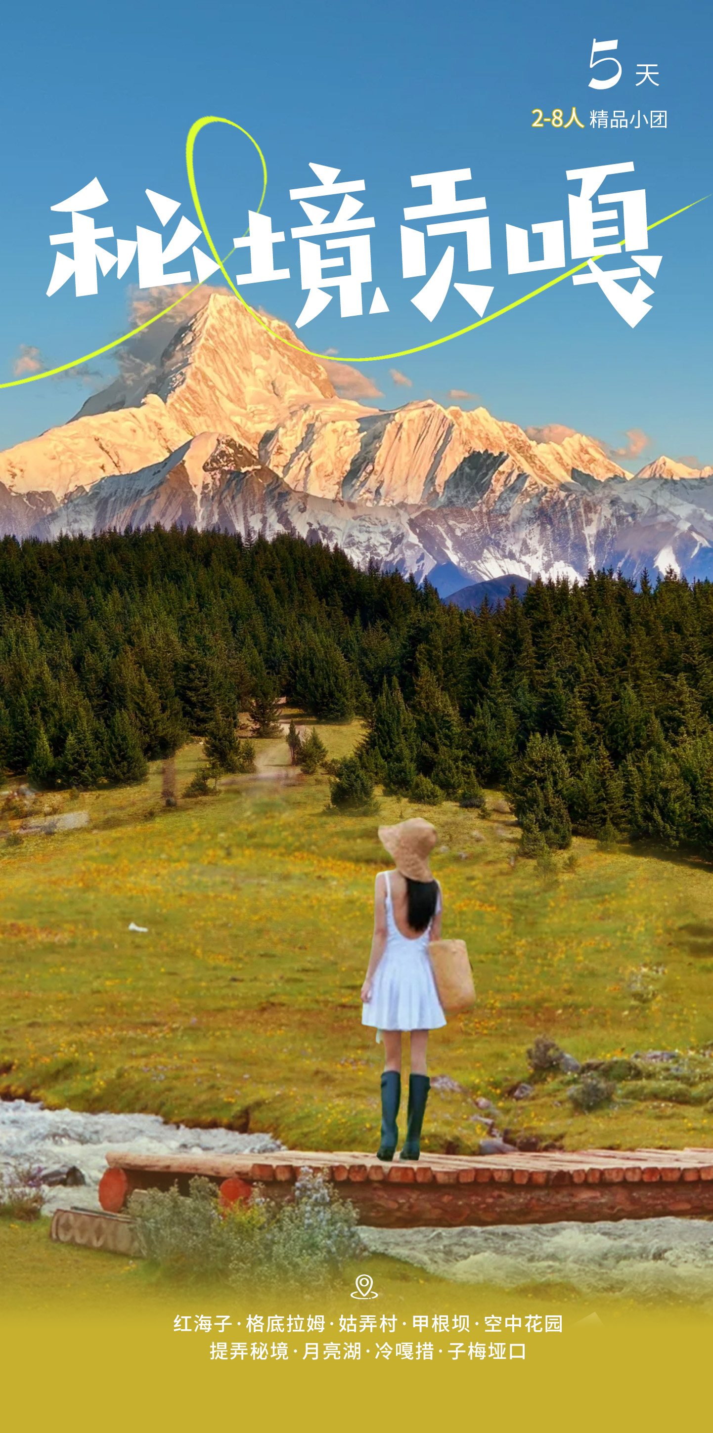 清晨从甲根坝出发,沿途欣赏高原草甸与远处连绵雪山构成的壮美景色,中途经过纳梯村,一路向着提弄秘境前进。抵达后,沿着蜿蜒的小路攀登,当站在海拔4500米的垭口观景台,贡嘎雪山群峰扑面而来,震撼人心的美景让人沉醉。