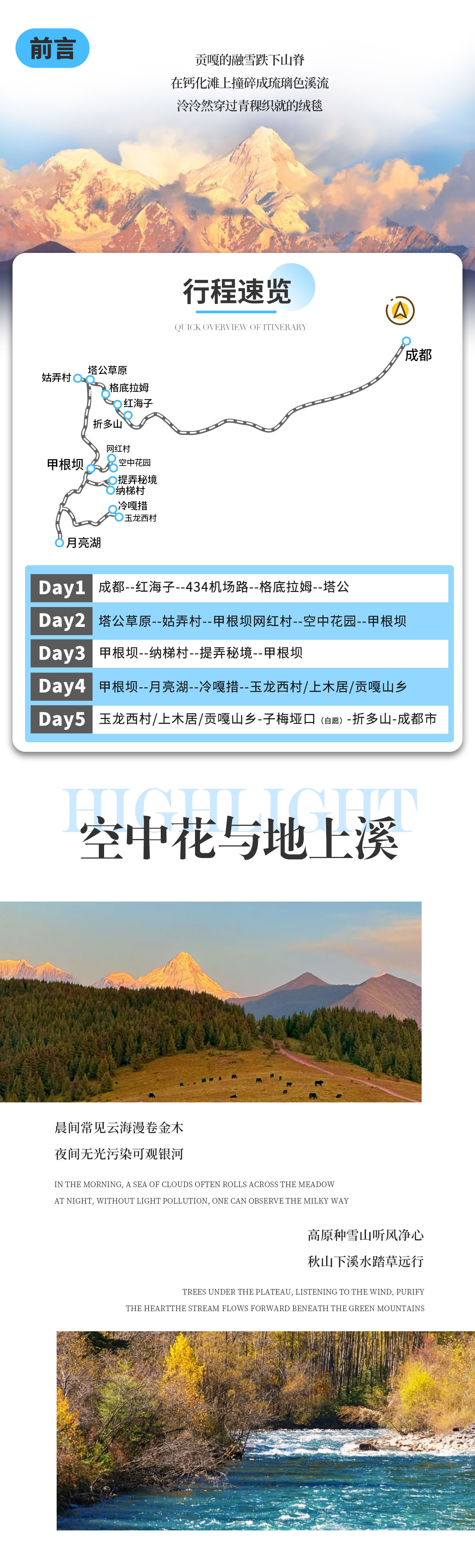 D5 玉龙西村/上木居/贡嘎山乡--子梅垭口(自愿)--折多山--成都市 |