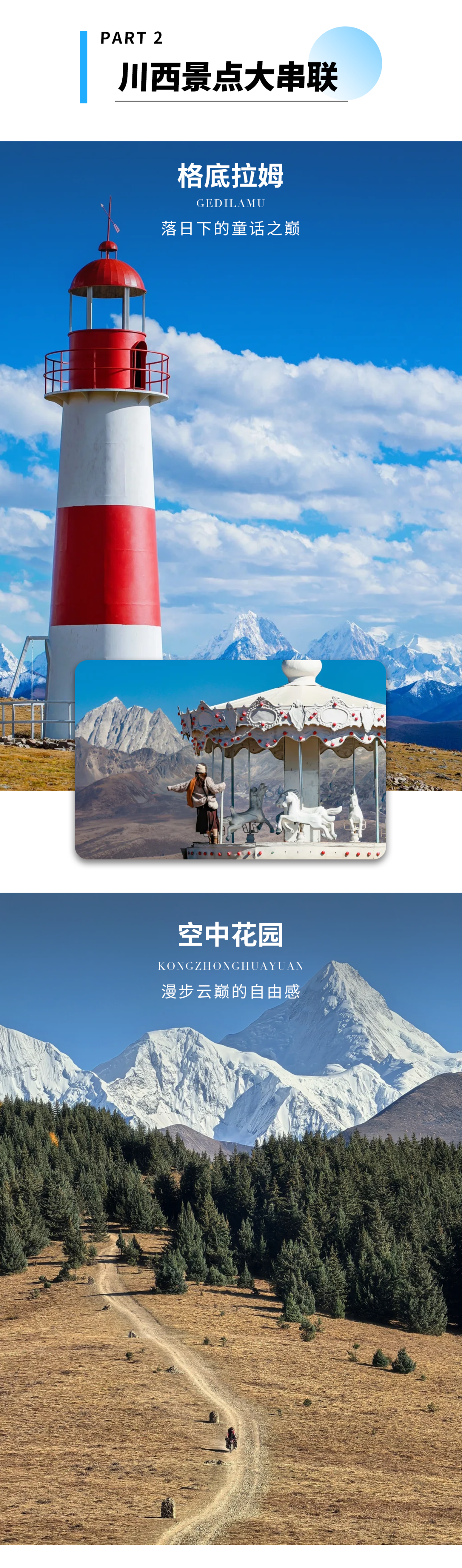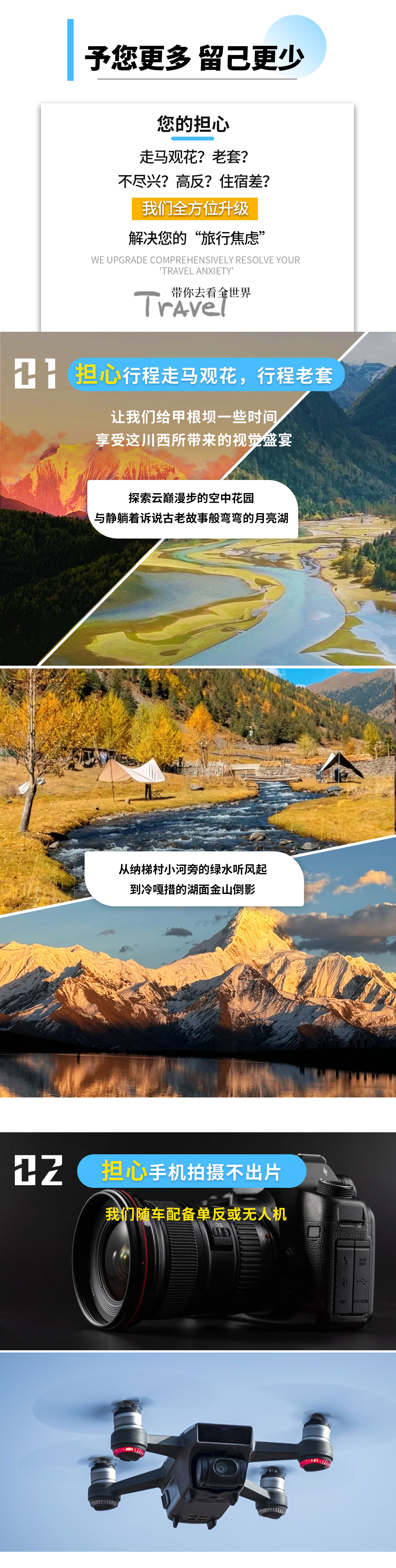 3、如格底拉姆拆迁、堵车或者天气原因等导致无法前往,替换为鱼子西,中转车费用自理,参考价格60-80元/人(原车师傅如愿意前往,也需补该费用给师傅)。如鱼子西也无法前往,则安排扎真、新都桥观景台等同类型观景点,如产生中转车费用,需自理。