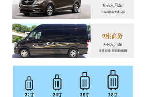 (3)行李箱:小车空间有限,行李箱大小请控制在20-24寸。