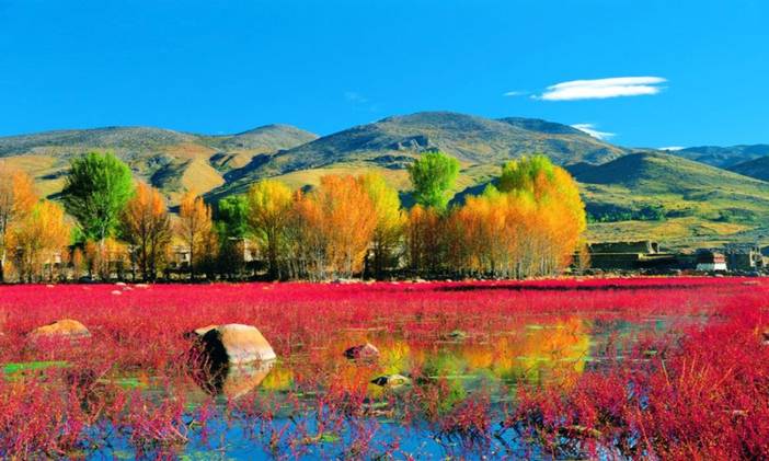 亚丁起个大早,酒店吃完早餐,出发前往芒康,途径稻城红草地,传说中的稻城红草地其实只有很小一块,有人用"一亩三分地"来形容其实也不为过,但这丝毫不影响摄影家们对它的狂热追逐,许多人不远万里只为了奔赴那一抹艳丽...生命是多彩的,生命是多义的,只有像稻城的"红草地"一样,经历了甜酸苦辣咸涩的人生,才会是绚丽动人的人生。经稻城回到318线上的重镇——理塘,在理塘休息一下,下午出发前往巴塘,途径姊妹湖,大家可以休息拍照哦,一路沿318前行,进入峡谷,跨过金沙江,便正式进入了西藏自治区,抵达芒康。