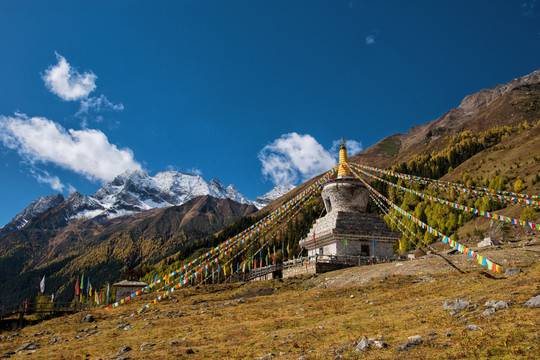早餐过后7-8点接早出发(具体时间以领队短信通知为准),成都出发经都汶高速,途经卧龙熊猫谷前往四姑娘山猫鼻梁在猫鼻梁远眺,前面是海子沟,后面是四姑娘山,可观四姑娘山全貌,风景很是震撼;前往四姑娘山镇午餐,随后前往双桥沟景区游玩,【四姑娘山双桥沟,平均海拔约3500米,游玩时间约3小时,门票参考80元/人+观光车70元/人】沟内主要以雪峰、牧场、草地、森林等为主,沟内山势陡峭曲折,林木葱郁,是四姑娘山美丽的一条沟。漫步沟内,可体验到真正的牧区风光。每当春秋季节,沟内五颜六色,蔚为壮观。沟内有观光车直达沟尾,可以毫不费力,轻松观赏沟内奇景; 游玩过后前往丹巴,晚上入住丹巴