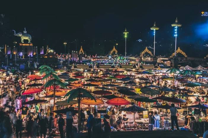 3、曼迈龙市场:景洪市郊区的露天市场,各种本地餐食,在夏天还能买到各种菌子~(从告庄前往约10km,打车约20元,可与曼丢古寨一起游览)