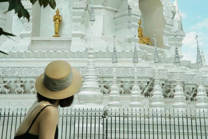 12:30 抵达此行最后一站【般若寺】,也被大家亲切地称为“帕召祜”,这里的通体白色般若佛塔,可是西双版纳地区相当有名的古老佛塔之一。也是许多影视剧钟爱的取景地之一,非常的出片。