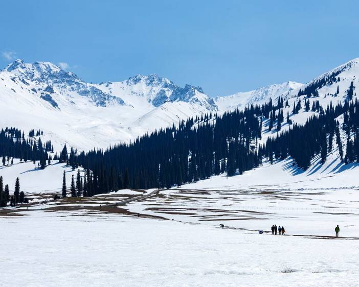 中午游览库尔德宁,景区内森林、草原、雪山、溪流、峡谷、瀑布等自然景观丰富,是天山山脉森林最繁茂的地方,拥有单位蓄材量世界罕见的云杉森林资源。我们在这里尽情玩雪,体验雪地转转,雪地爬犁在冬季的云杉中带给大家震撼。我们还为大家准备了【雪地骑马】体验。