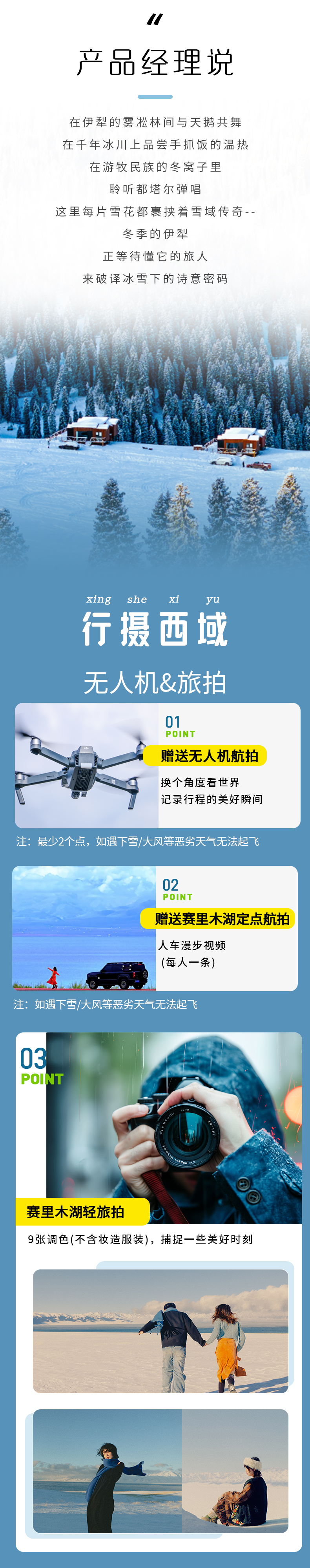 2. 赠送赛里木湖围炉煮茶+人车漫步视频+轻旅拍(9张调色,不含装造服装)