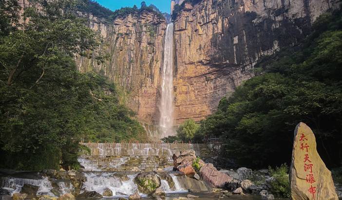 早餐后,伙伴们要开始走的南太行最具盛名的徒步穿越路线——【抱犊沟穿越】。抵达马武寨,整理行装,顺谷而下。一路悬崖飞瀑,景色壮阔。一线天狭长如巷,七星潭叠瀑重重,未开发的原始自然风光,让大家心潮澎湃。