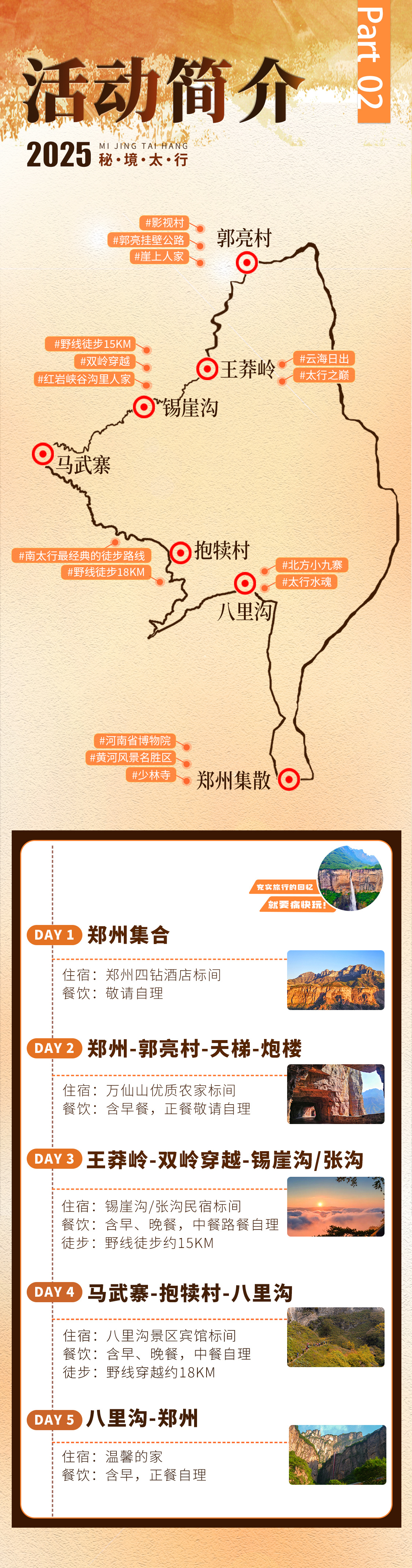 装备:为响应环保号召,景区农家不配一次性用品,请大家自备洗漱用品哦;