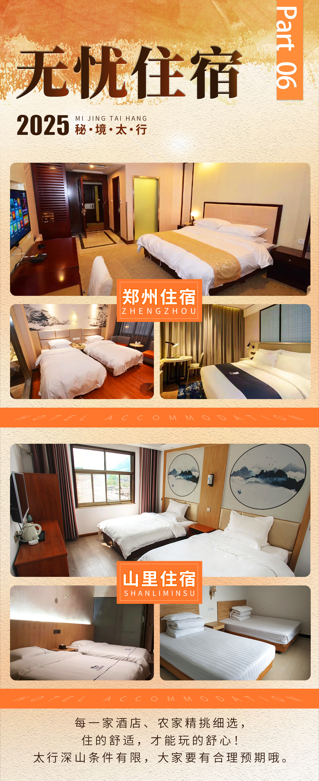 3、房间安排:全程安排双人间,分房时会尽量满足同行者同屋,但不做保证;