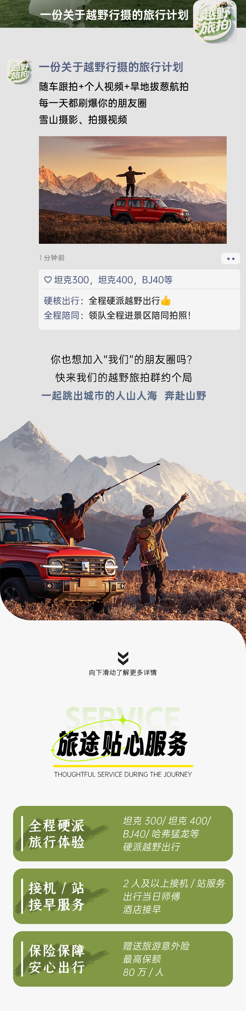 2、如果您座我们的车:全程安排硬派越野车,车型不指定保证安排越野越野车出行,保证每人一正座;