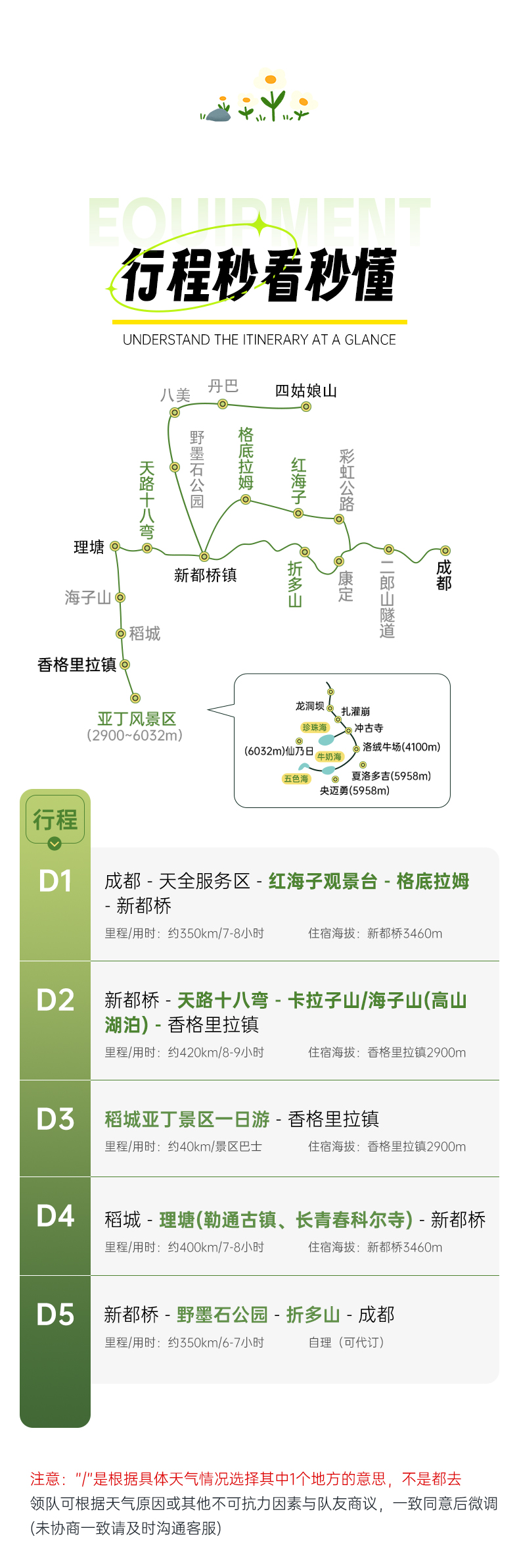 注:4人越野小团不会额外收取格底拉姆、鱼子西摆渡车费用。